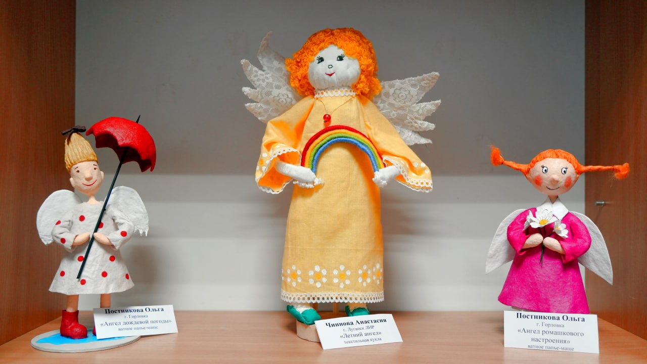 Проект родился по инициативе мастера кукольного дела Галины Коршун из Горловки. Отправной точкой стали трогательные рисунки художницы Екатерины Батищевой из Липецка, чьи «ангельские» образы вдохновили мастеров на создание объемных воплощений. На выставке представлено 27 рисунков и 33 куклы, выполненные в разнообразных техниках: текстильная кукла, мокрое валяние, ватное папье-маше, художественная керамика. В экспозиции приняли участие 14 мастеров из Кемеровской области, Костромы, Череповца, Витебска, Горловки и других городов.