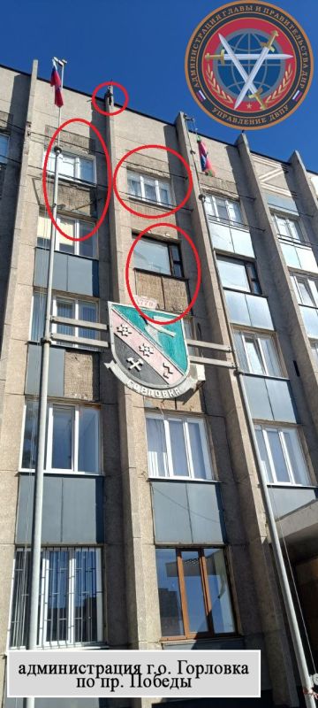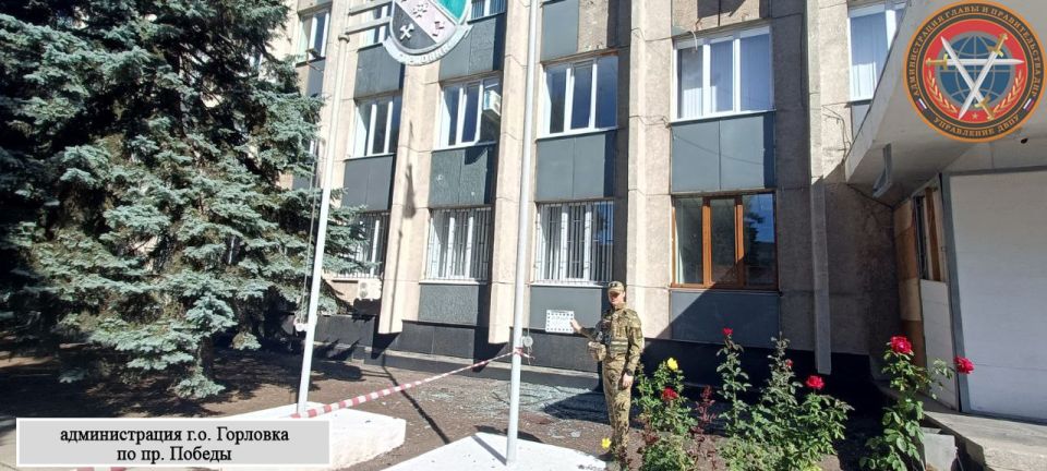 Задокументированы повреждения остекления и фасада здания администрации г.о. Горловка по пр. Победы.