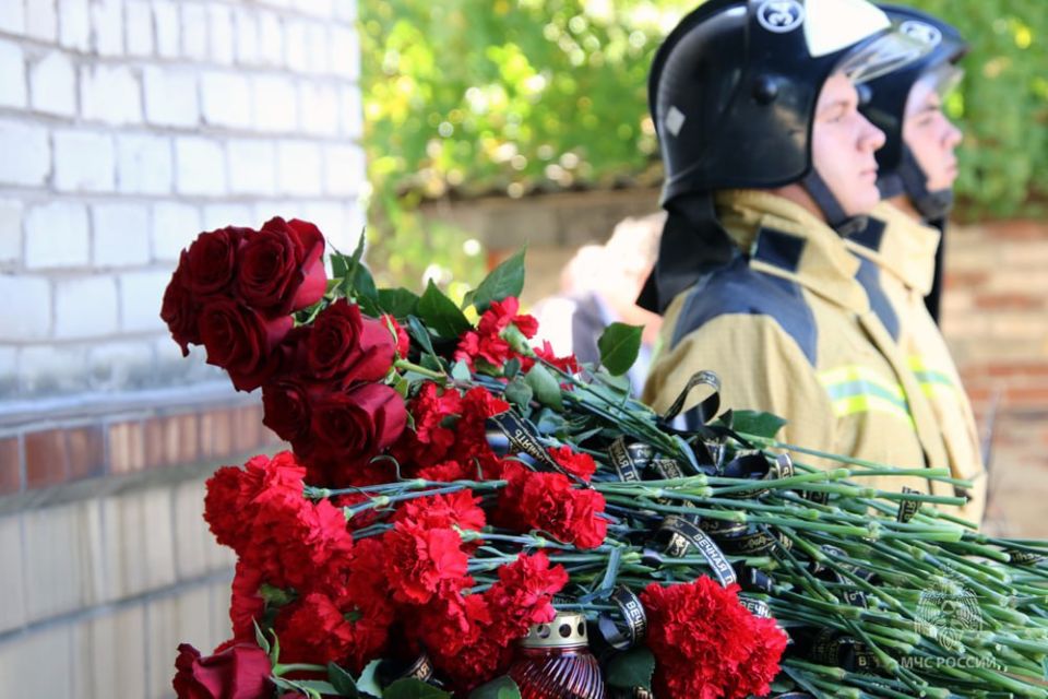 В атмосфере глубокого уважения и скорби руководство, личный состав и ветераны пожарной охраны возложили цветы к памятному знаку.
