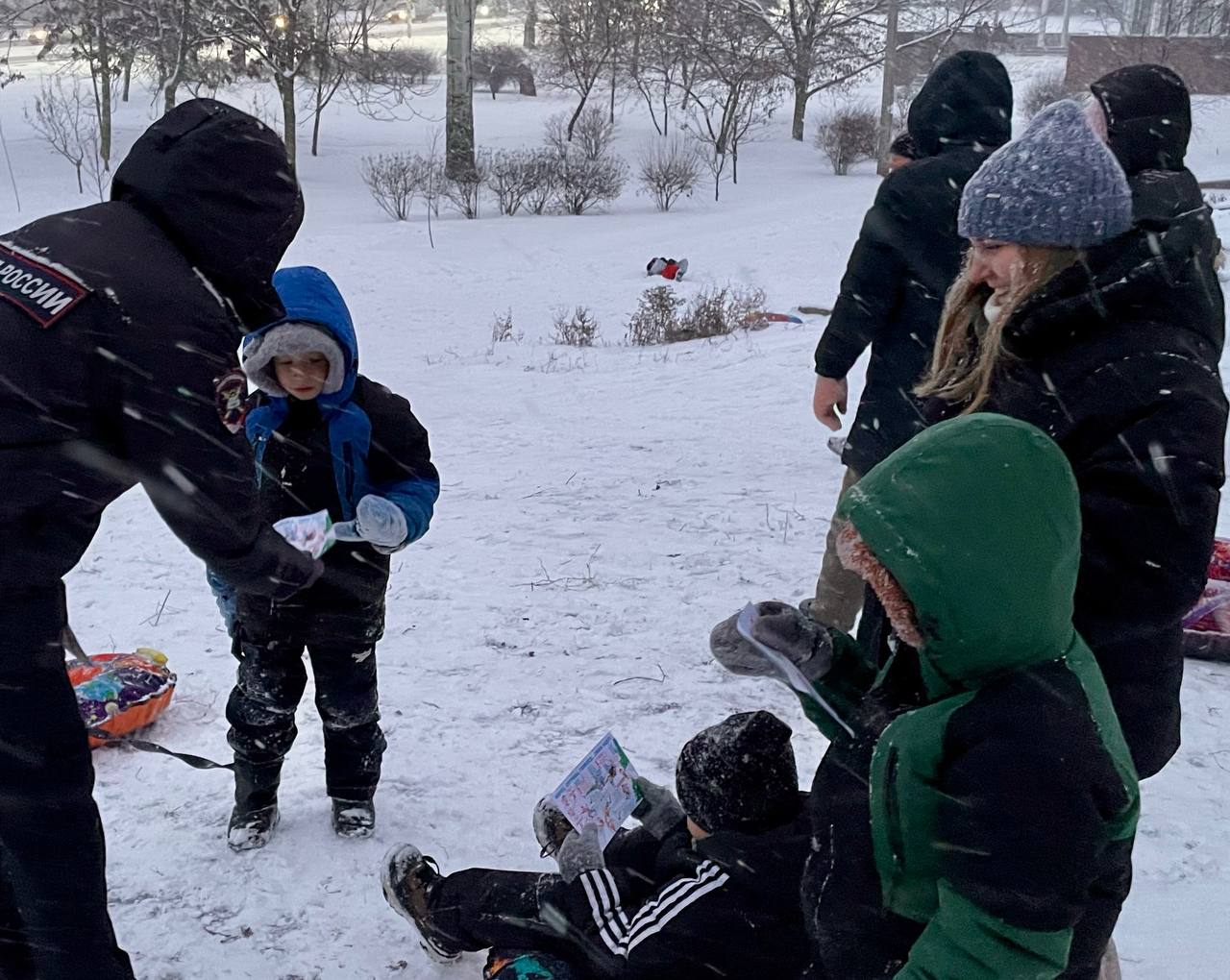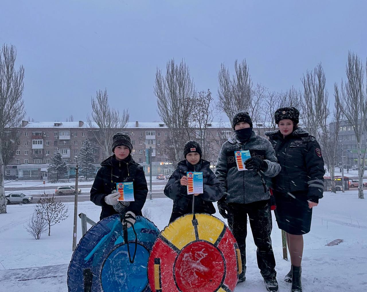 Сотрудники ОГИБДД УМВД России «Донецкое» провели разъяснительные беседы с родителями и детьми на одной из площадок вблизи цирка «Космос». Полицейские объяснили, что катание на санках и тюбингах с горок вблизи дорог является небезопасным зимним развлечением.