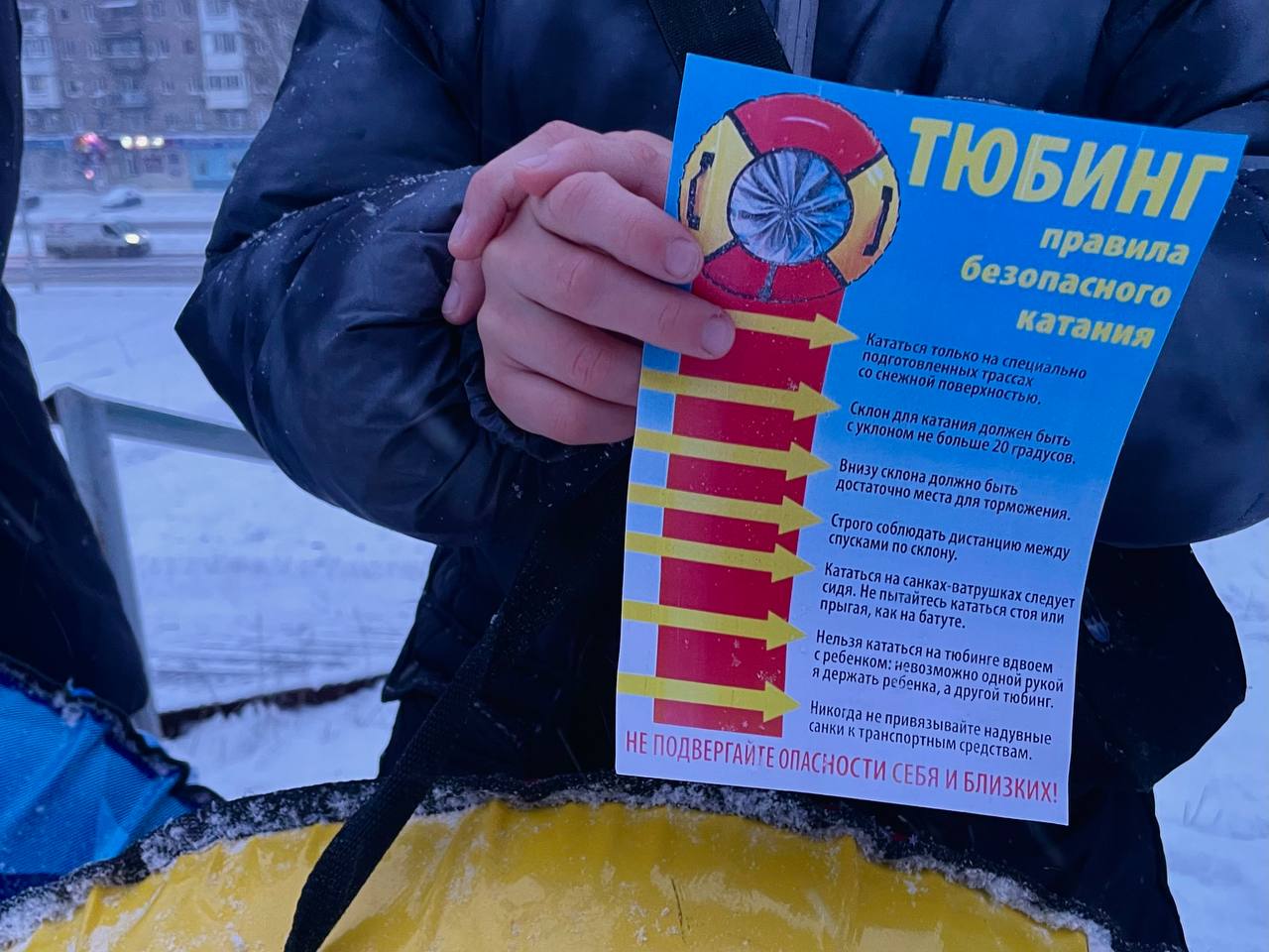 Автоинспекторы настоятельно рекомендовали родителям уделять особое внимание выбору мест для зимних развлечений детей. Катание на тюбингах («ватрушках»), санках и других приспособлениях должно происходить только в безопасных или специально отведенных для этого местах – парках, скверах, детских площадках.
