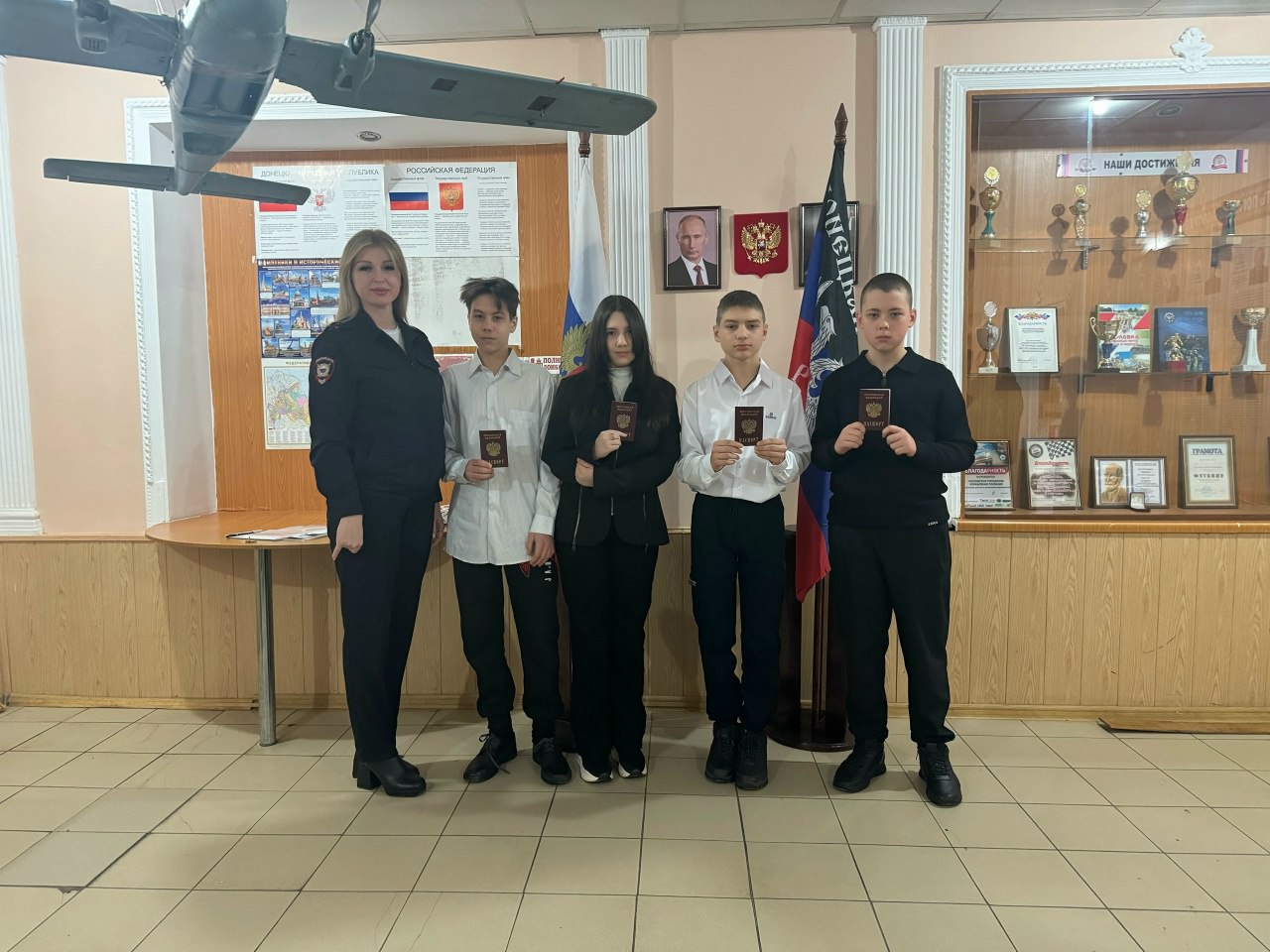 Начальник отдела по вопросам миграции УМВД России «Горловское» Анна Швецова лично вручила ребятам их главный документ.