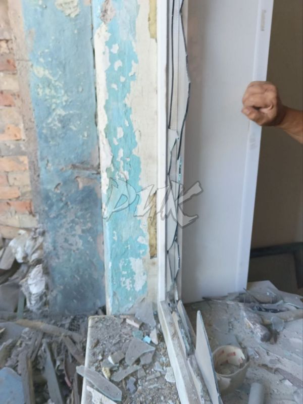 Жилой массив «Комсомолец» (Никитовский район Горловки). Последствия атаки БПЛА украинских террористов сегодня ночью. К счастью, без пострадавших.
