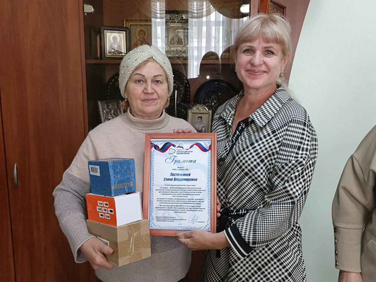Педагоги получили памятные подарки от Общественной организации «Русский мир» и Союза женщин ДНР, а также грамоты партийного проекта «Женское движение Единой России» и тёплые поздравления, адресованные от имени председателя общественного совета партийного проекта ЖДЕР и председателя Союза женщин ДНР Екатерины Мартьяновой.