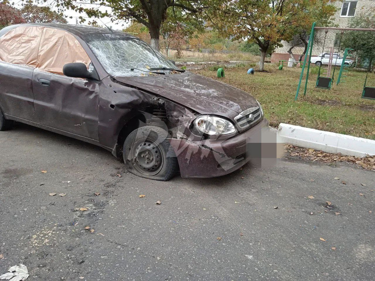 Сегодня уже удар был нанесён по посёлку Комарова в Никитовском районе. Повреждено здание и автомобиль. На заднем плане можно увидеть детскую площадку…
