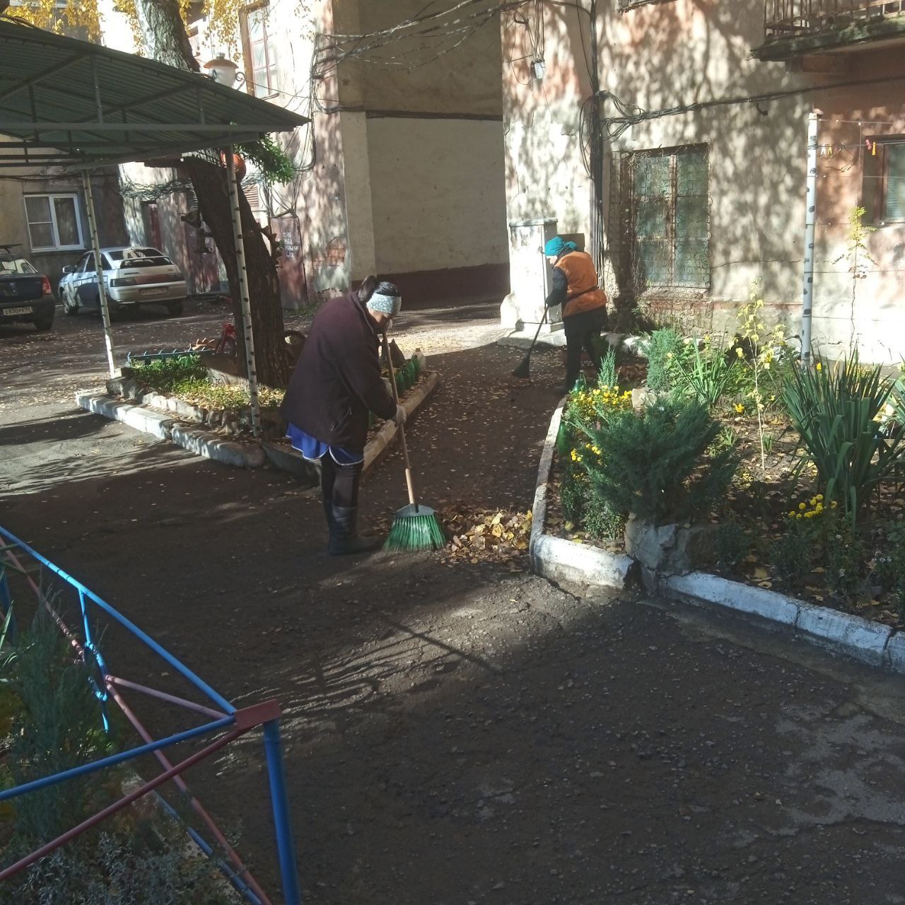 - уборка на контейнерных площадках, придомовых территориях, межквартальных проездах, детских площадках, газонах, центральных улицах, остановках общественного транспорта;