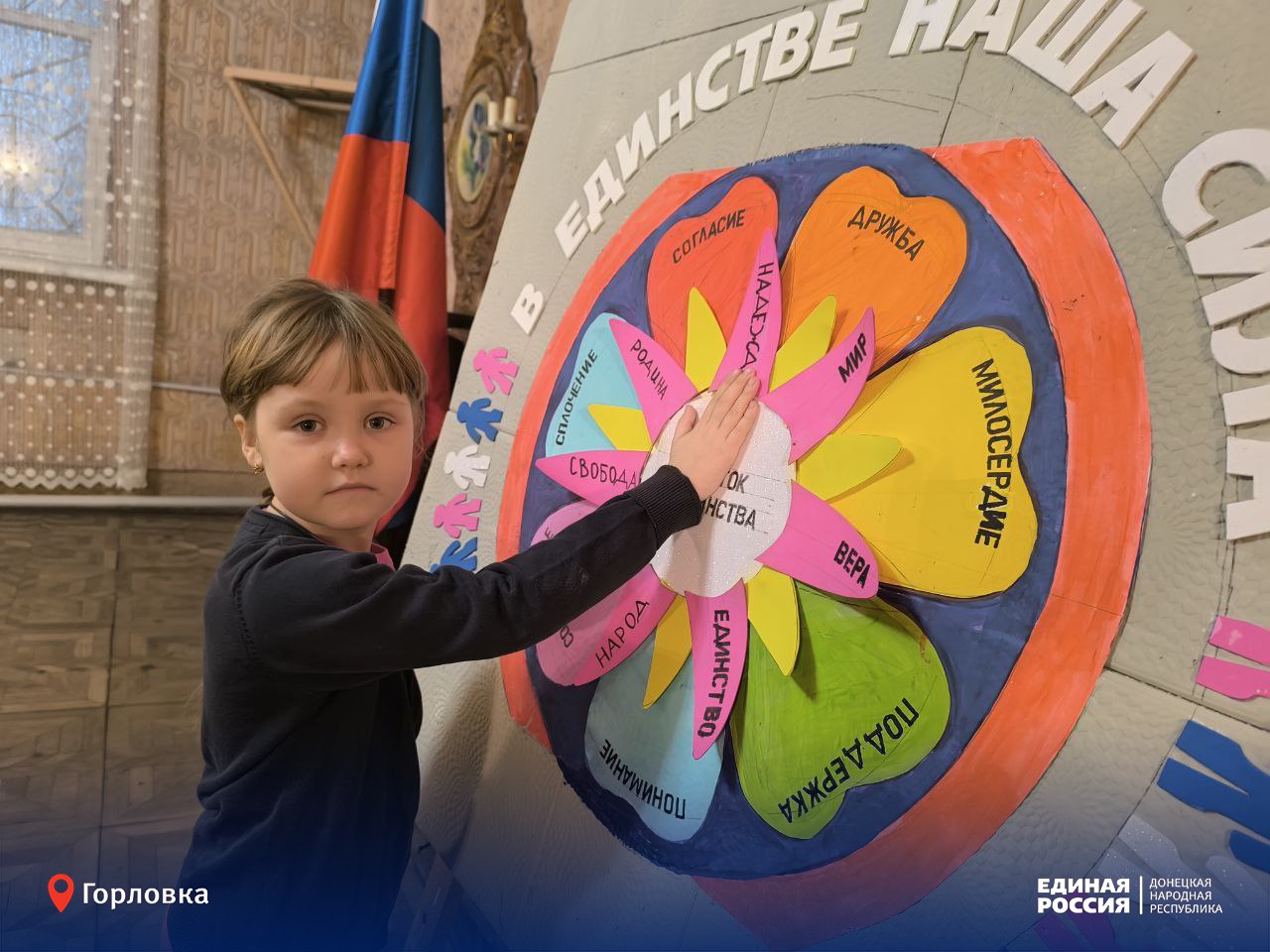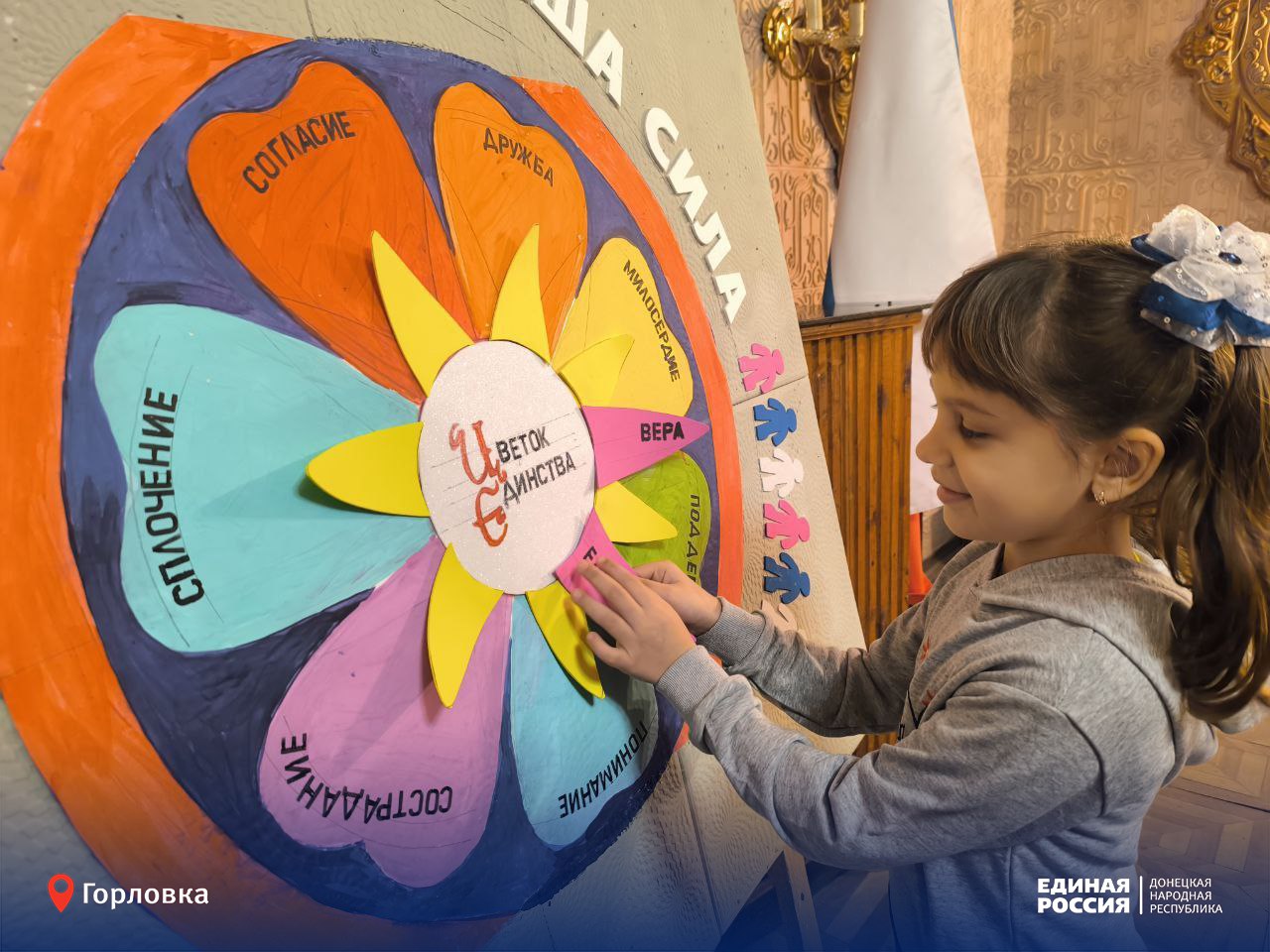 В Горловке расцвел цветок единства: праздничную акцию для ребят организовали единороссы