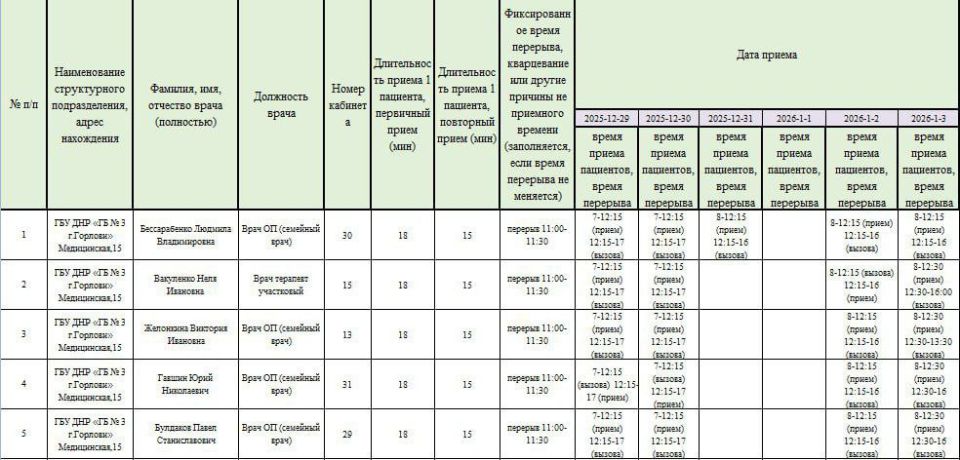Иван Приходько: График работы специалистов ГБУ ДНР «Городская больница № 3 г. Горловки»