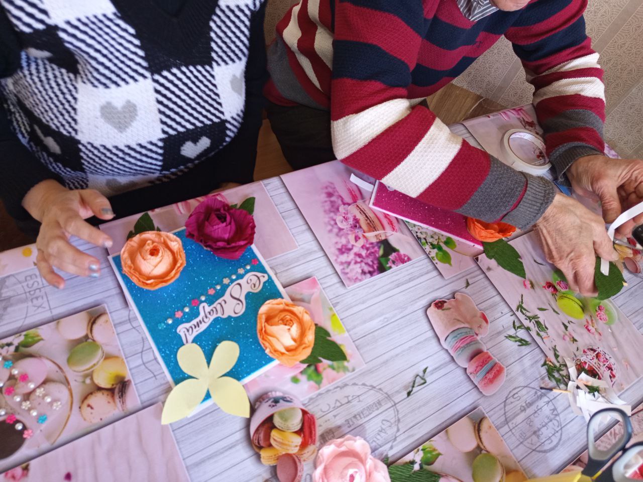 Сотрудники центра провели мастер-класс по созданию объемных открыток из крафтовой бумаги для получателей социальных услуг.