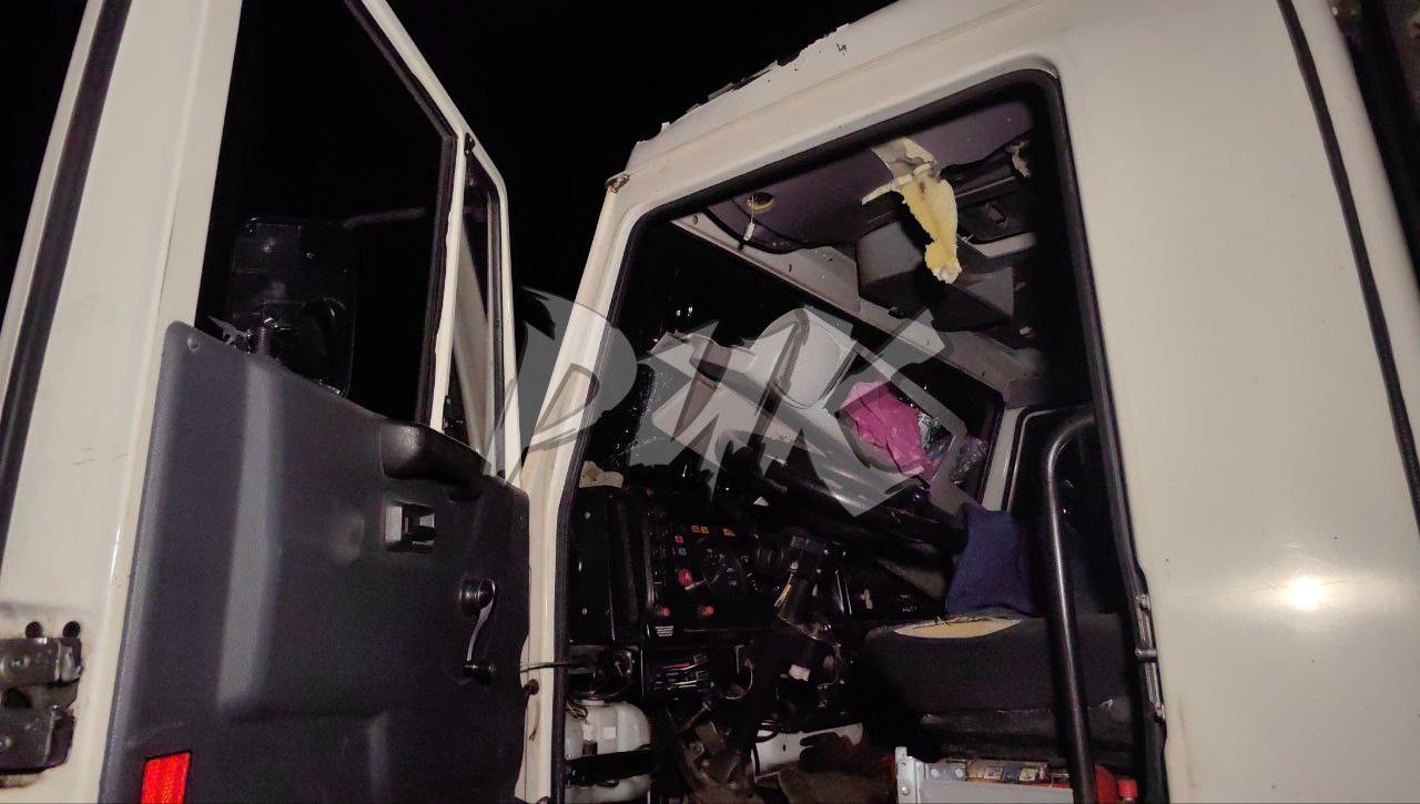 Повреждённая ударом БПЛА ВФУ специализированная техника одной из ресурсоснабжающих организаций Горловки.@Prikhodko1970