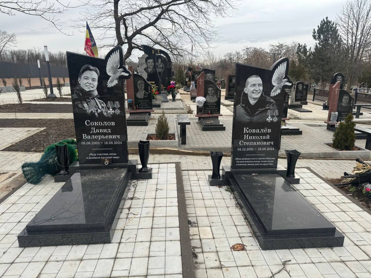 Среди тех, кто покоится на этом кладбище, помимо уже названных героев, – волонтёры Николай Ковалёв («Чапай») и Давид Соколов («ТЮР»); о них был выпуск моих «Путвых заметок».