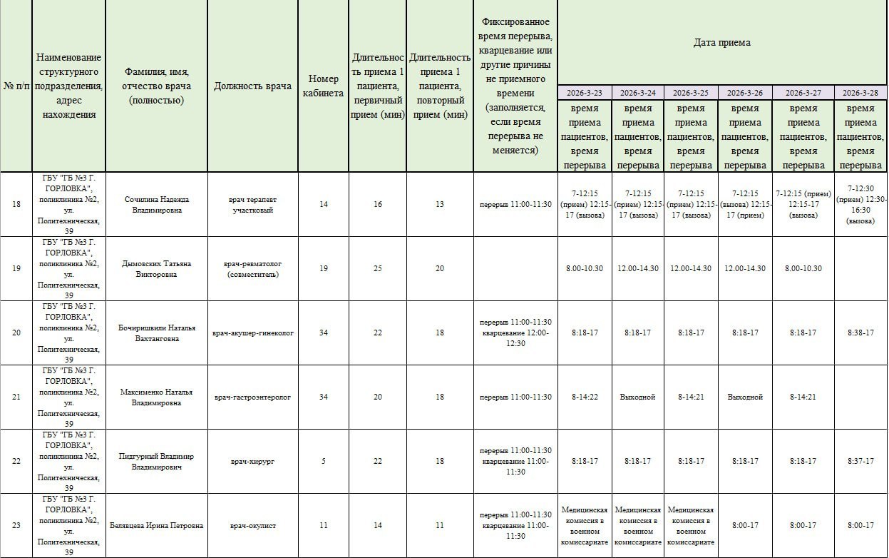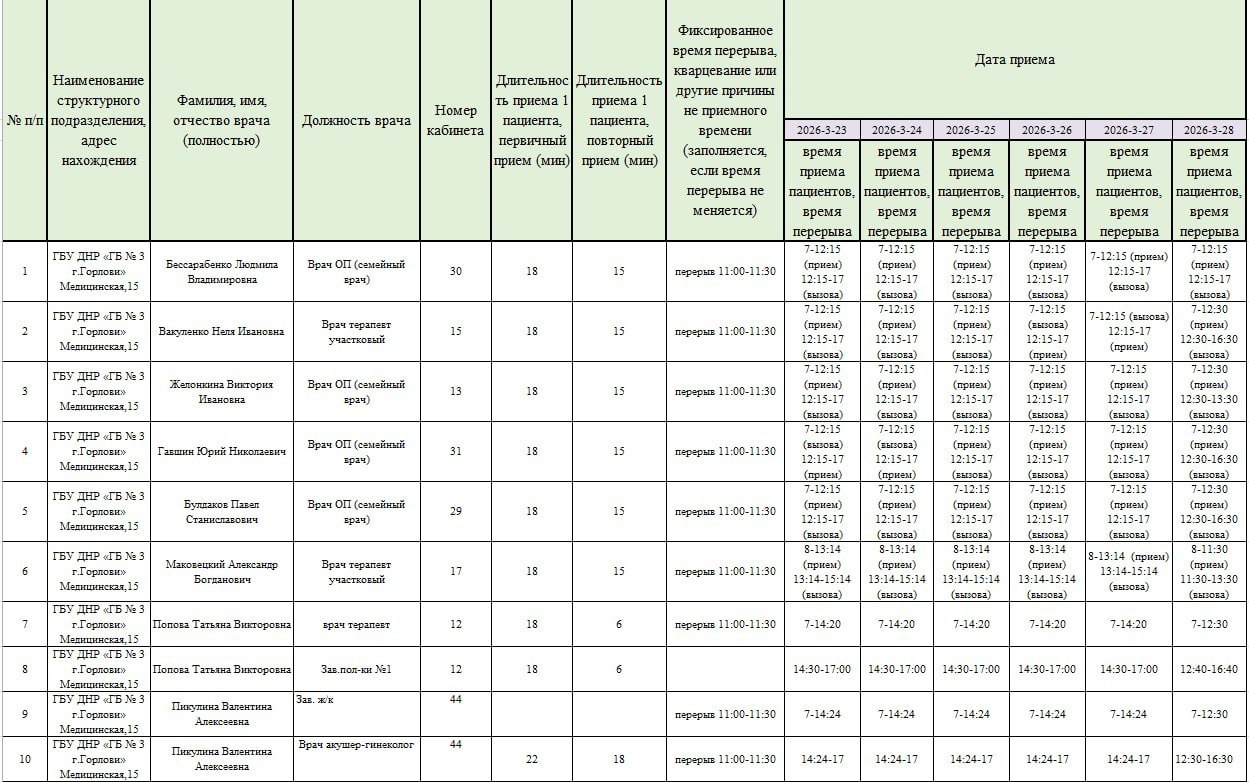 Иван Приходько: График работы специалистов ГБУ ДНР «Городская больница № 3 г. Горловки»