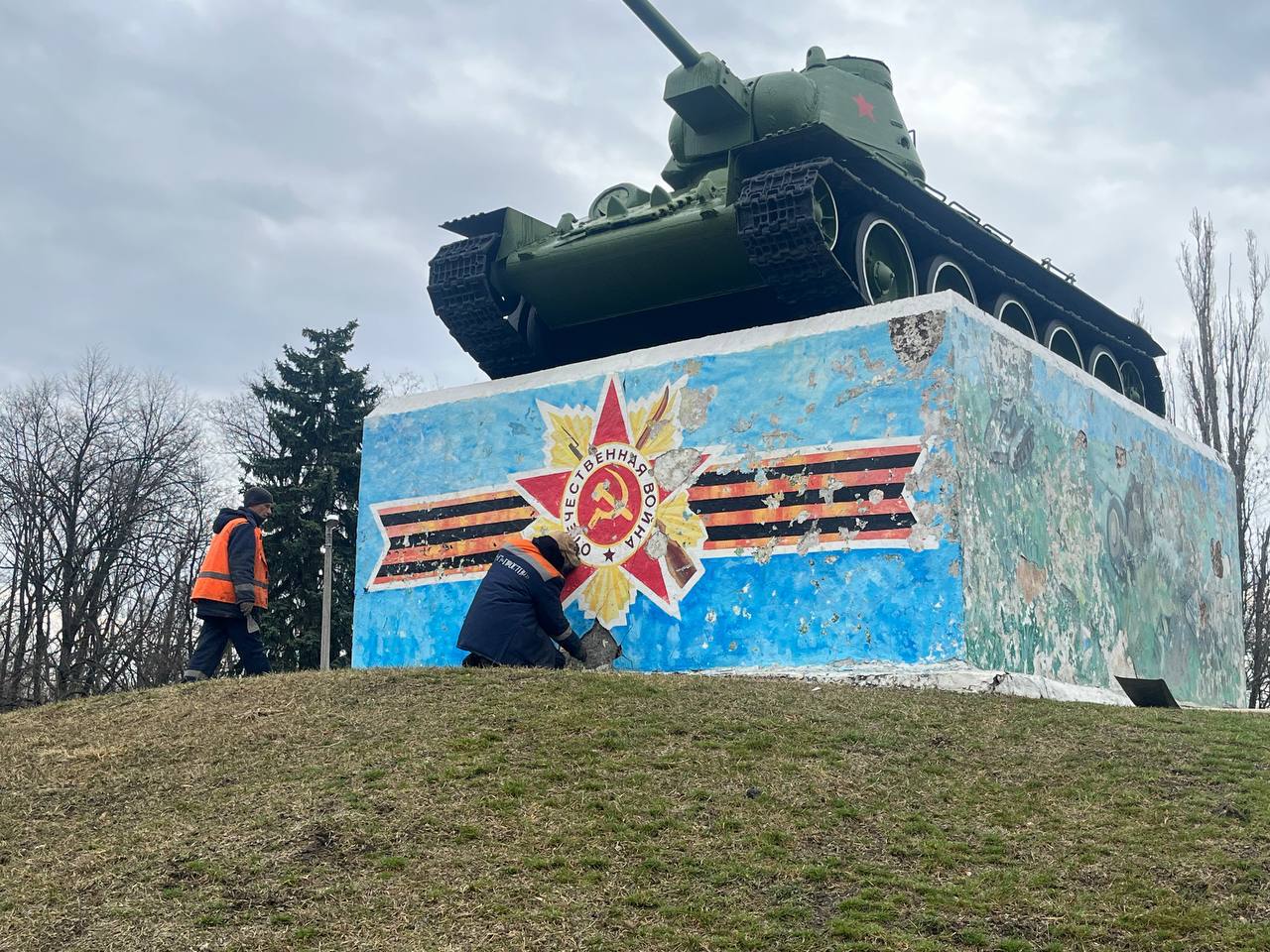- окраска памятника в сквере Советской Армии;