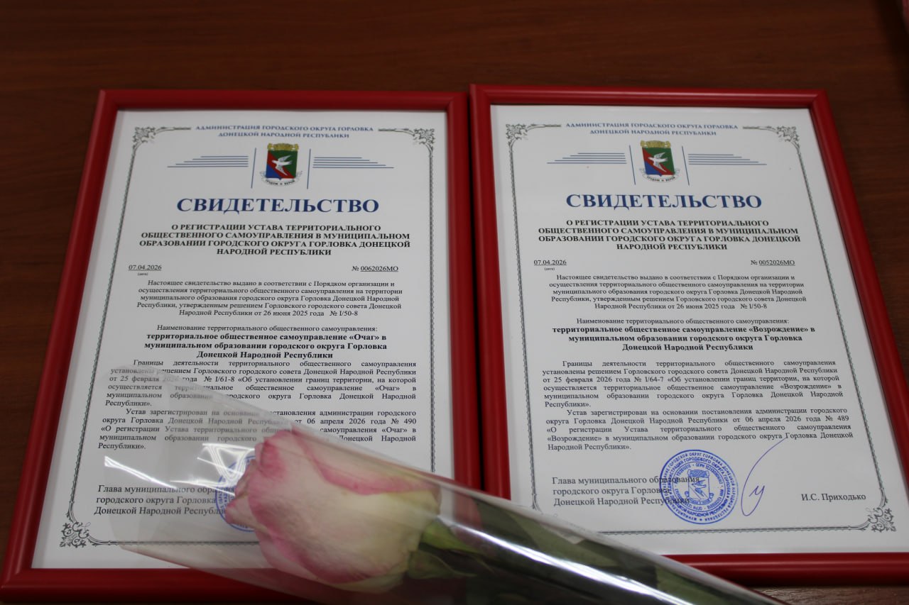 В Горловке вручили свидетельства о регистрации Уставов территориальных общественных самоуправлений «Возрождение» и «Очаг»