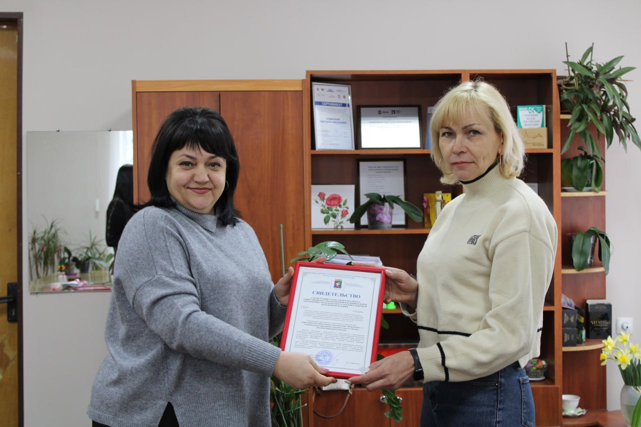 Сегодня, 15 апреля, заместитель главы администрации городского округа Горловка Светлана Кудинова вручила свидетельства о регистрации Уставов территориальных общественных самоуправлений «Возрождение» и «Очаг» в муниципальном образовании городского округа Горловка Донецкой Народной Республики.