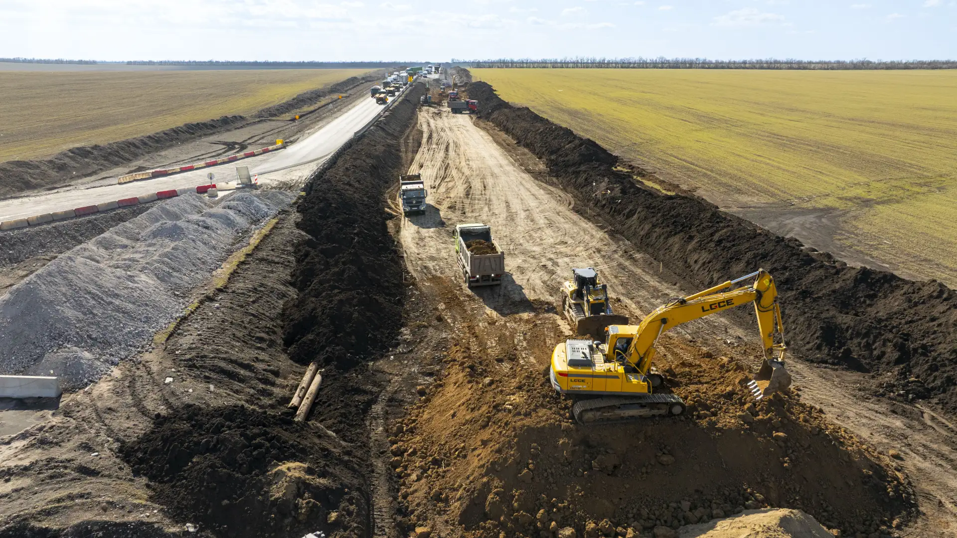 Подготовительный этап уже завершен: специалисты дорожного хозяйства занимаются устройством основного хода участка автодороги «Новороссия». Вместе с тем, продолжаются работы по снятию почвенно-растительного слоя и устройству земляного полотна, а также рабочего слоя с применением техногенного грунта. Одновременно производятся монтаж водопропускных труб и переустройство инженерных коммуникаций, попавших в зону производства работ.