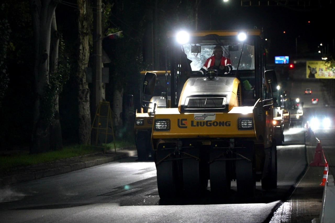 Ремонт на одной из главных транспортных артерий столицы Республики идет на участке 7,6 км. Ежедневно и круглосуточно здесь работают около 60 специалистов и 50 единиц техники. Чтобы не мешать плотному трафику, основные процессы по укладке асфальта проводим в ночное время.