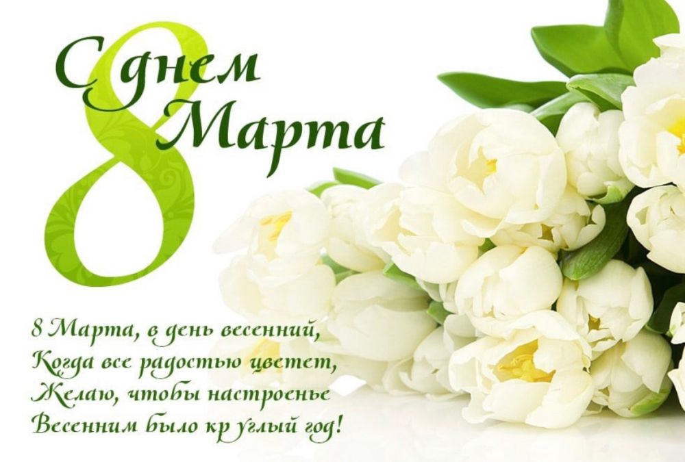 Милые и очаровательные женщины! Сердечно поздравляю вас со светлым весенним праздником – Международным женским днём! 8 марта символизирует торжество любви, мечты и красоты. Он олицетворяет весну и несёт новые надежды. В этот первый весенний праздник мы отдаём дань искреннего уважения, любви и признательности нашим дорогим женщинам, матерям и бабушкам, сестрам и дочерям за мудрость и терпение, заботу и доброту, душевное тепло и нежность.