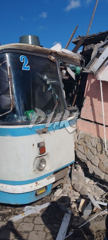Иван Приходько: Поврежденный ударом БПЛА украинских нацистов автобус в жилом массиве «Комсомолец»