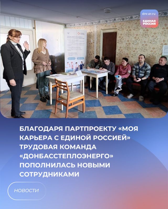 Попасть в большую и дружную трудовую команду «Донбасстеплоэнерго» смогли временные переселенцы благодаря партийным проектам «Школа ЖКХ» и «Моя карьера с Единой Россией». Сотрудники горловского отделения «Донбасстеплоэнерго» провели для них выездной информационный семинар по трудоустройству на предприятие. Жителям ПВР рассказали о предприятии и имеющихся вакансиях. А для желающих влиться в трудовой коллектив провели собеседования.
