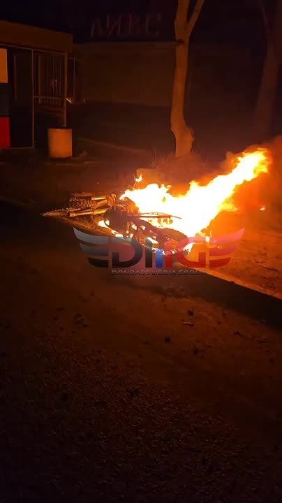 Горловка. В результате атаки дрона этой ночью, сгорел мотоцикл.