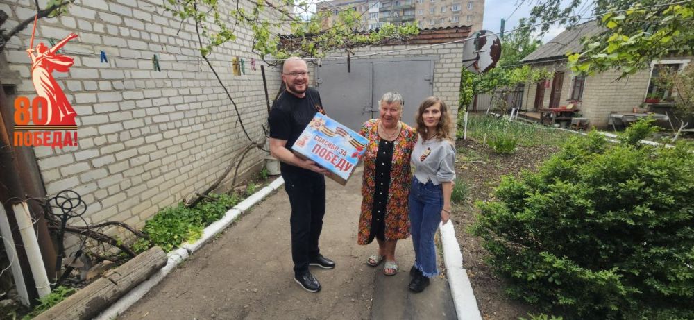 Руководитель Управы Центрально-Городского внутригородского района города Горловка Анна Ставицкая и глава администрации Центрально-Городского района г. Горловка Дмитрий Вальтер поздравили с 80-й годовщиной со дня Великой Победы вдов ветеранов-участников боевых действий Великой Отечественной войны Григория Александровича Белана и Василия Никифоровича Попова, передав им подарки.