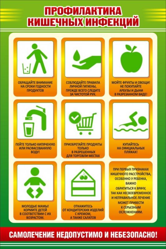 Необходимо: соблюдать условия хранения и приготовления пищи, использовать отдельные доски и посуду для сырых и готовых продуктов, тщательно мыть овощи и фрукты, мыть руки после туалета, контакта с животными и перед едой, поддерживать чистоту на кухне и купаться только в разрешенных местах.