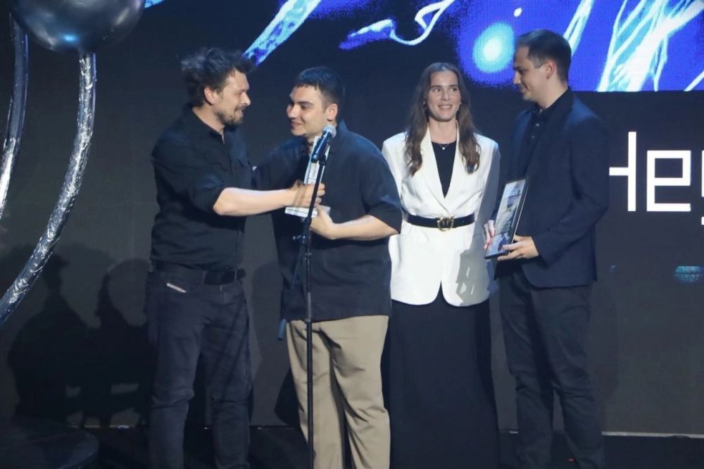 Дмитрий Богдан, актер и член жюри фестиваля, передал награду Владиславу, режиссеру картины, уроженцу Горловки.
