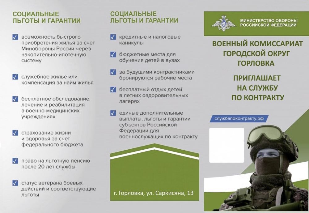 Военный комиссариат городской округ Горловка приглашает на службу по контракту