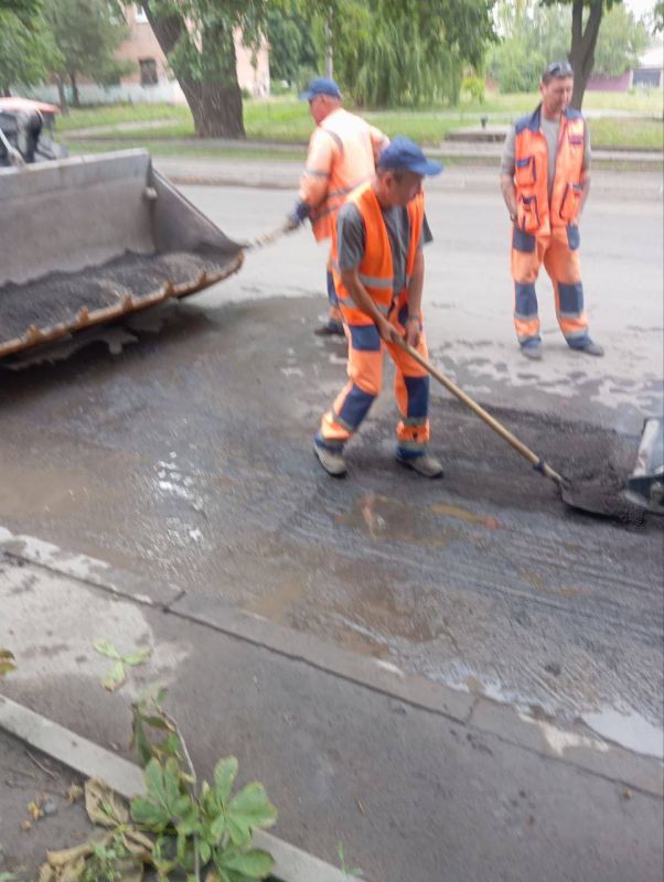 Продолжаем текущий ремонт дорожного покрытия по улице Углегорской в Петровском районе