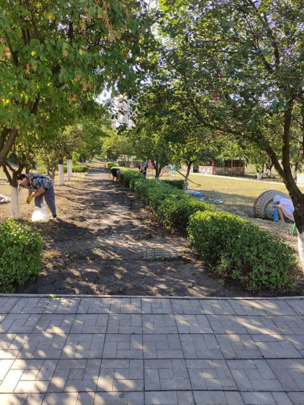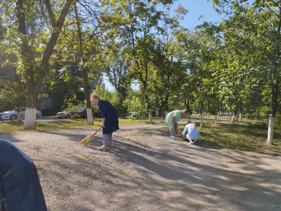 Активисты убрали траву, подмели и очистили территорию от легкого мусора, привели в порядок цветочные клумбы.