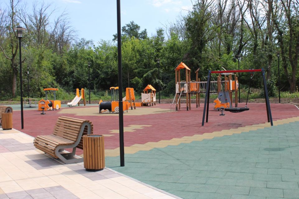 Работы по благоустройству начаты в 2024 году. Выполнено устройство детской площадки, покрытие из брусчатки, устройство освещения.