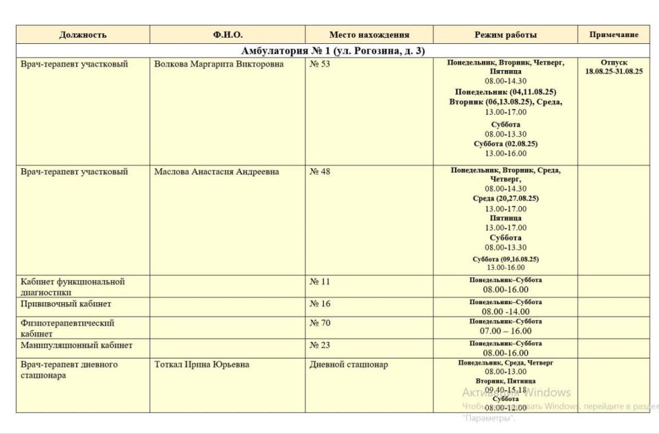 График приёма специалистов ГБУ ДНР «ЦПМСП №1 г.Горловки», ГБУ ДНР «Городской онкологический диспансер г.Горловки», ГБУ ДНР «Городской противотуберкулезный диспансер г.Горловки»