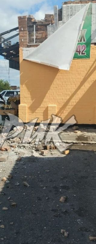 Последствия удара дрона ВФУ по одному из магазинов в поселке станции Никитовка (Никитовский район Горловки).