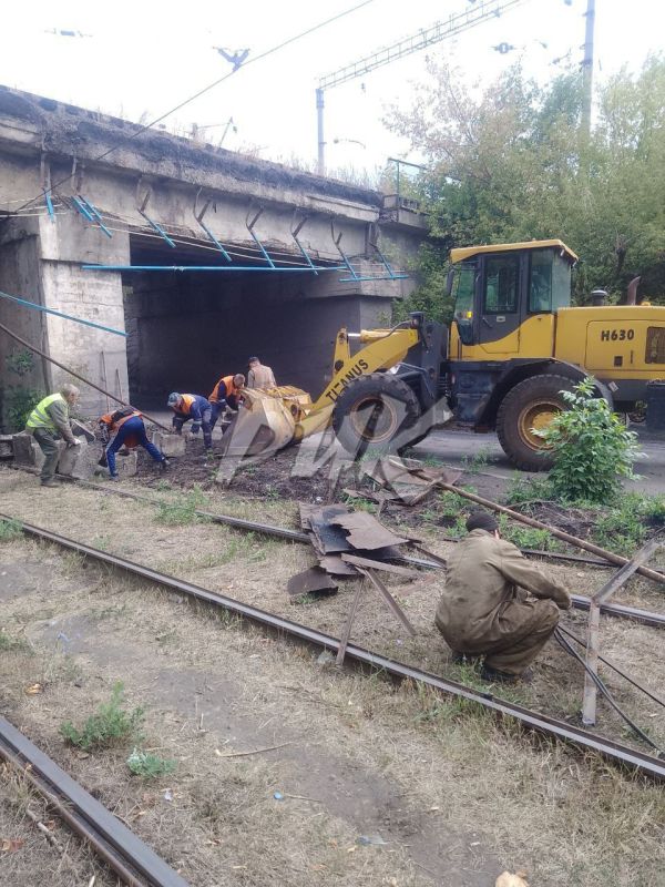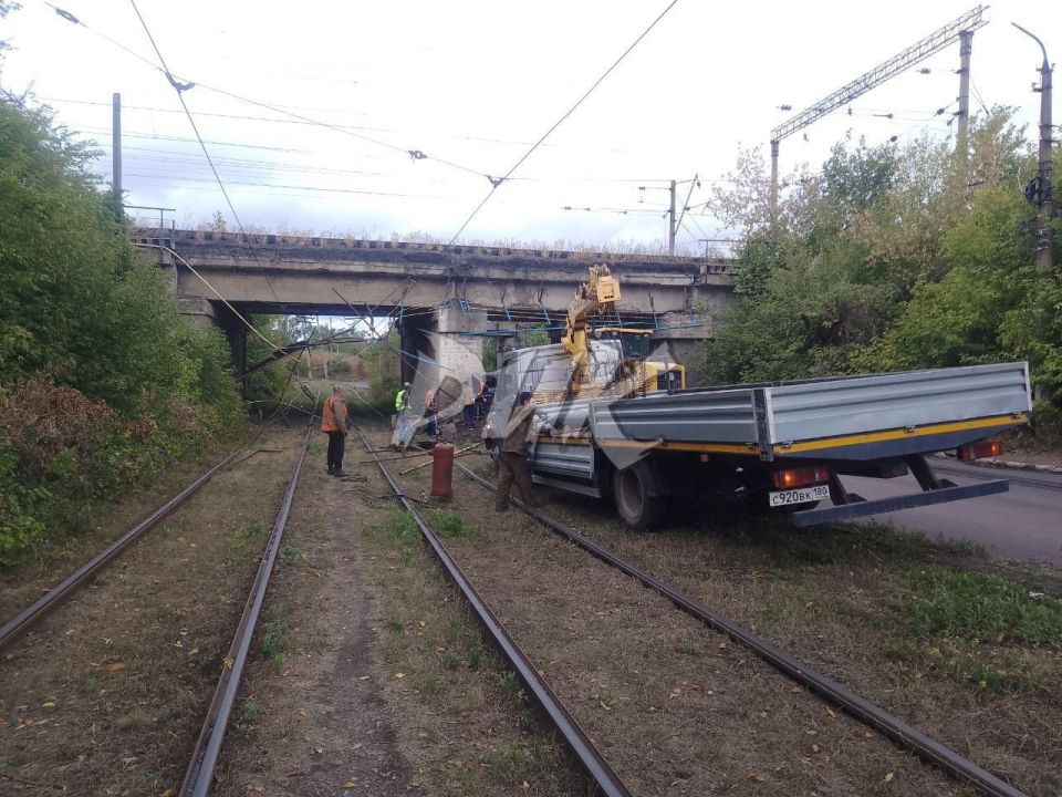Коммунальные службы города ликвидировали последствия обрушения конструкций моста в Калининском районе Горловки, движение общественного транспорта восстановлено