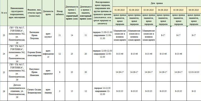 Иван Приходько: График работы специалистов ГБУ ДНР «Городская больница № 1 г.Горловки», ГБУ ДНР «ГБ №3 г.Горловки»
