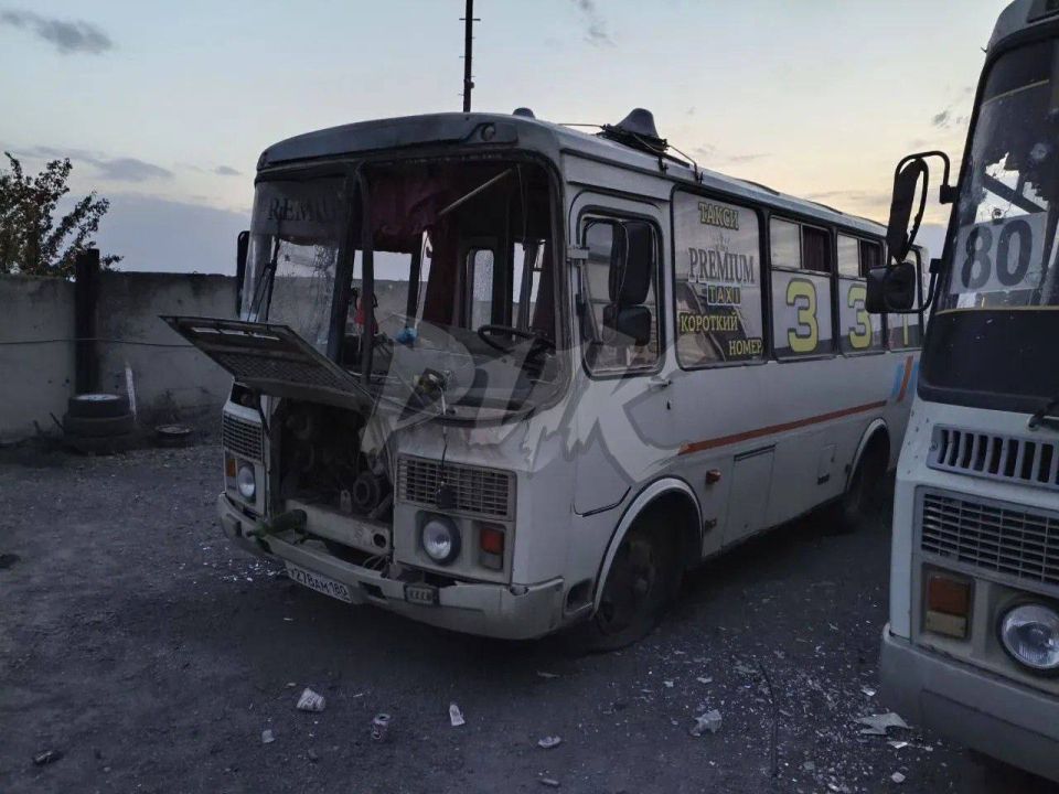 Последствия атаки БПЛА ВСУ на автобусы в микрорайоне "Квартал 88" в Горловке