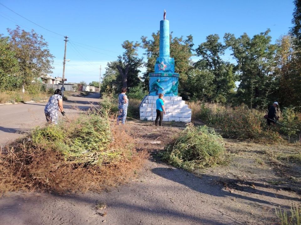 Ко дню освобождения Донбасса участники субботника привели в порядок территорию вокруг памятника воинам, погибшим в годы Великой Отечественной войны. Участники очистили территорию от мусора, обрезали кустарники, вырубали сухостой, придав мемориалу ухоженный вид.