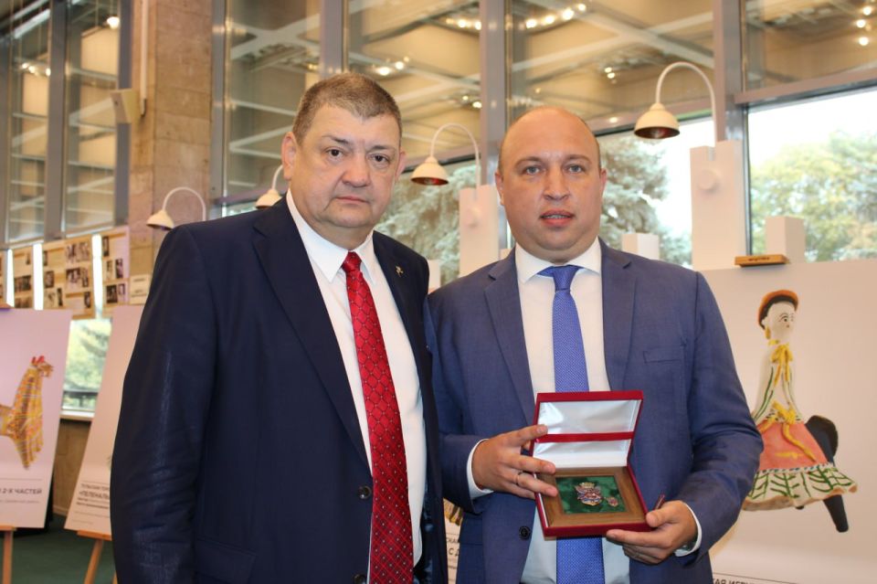 Во время пребывания в Туле вручил памятные знаки «Герб города Горловки» главе муниципального образования города Тула Алексею Алоисовичу Эрку, главе администрации города Тулы Илье Ильичу Беспалову и Министру внутренней политики Тульской области Дмитрию Олеговичу Ярцеву.