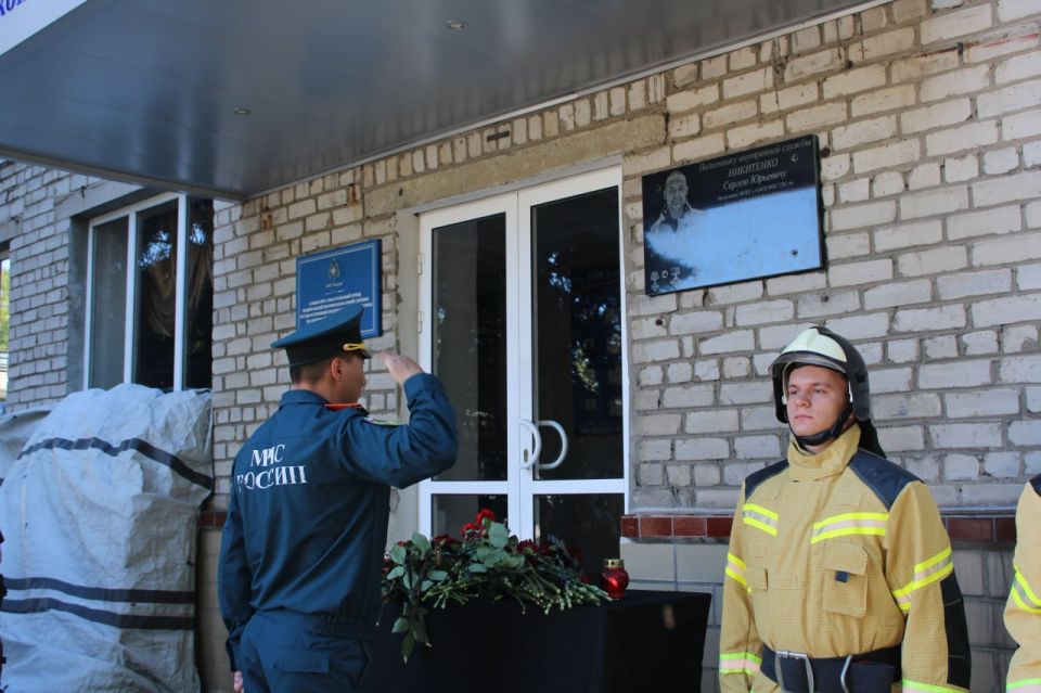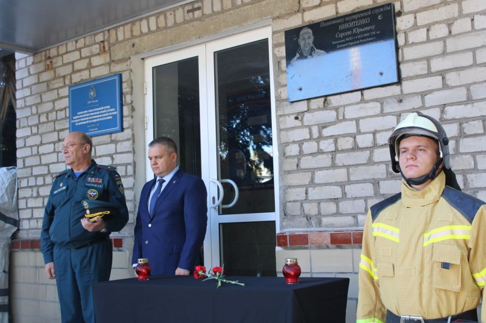 Почетное право открыть мемориальную доску было предоставлено первому заместителю главы администрации городского округа Горловка Павлу Владимировичу Калиниченко и временно исполняющему обязанности начальника главного управления МЧС России по Донецкой Народной Республике генерал-майору внутренней службы Дмитрию Игоревичу Костямину, после чего в знак светлой памяти о погибшем герое присутствующие возложили цветы у мемориальной доски.