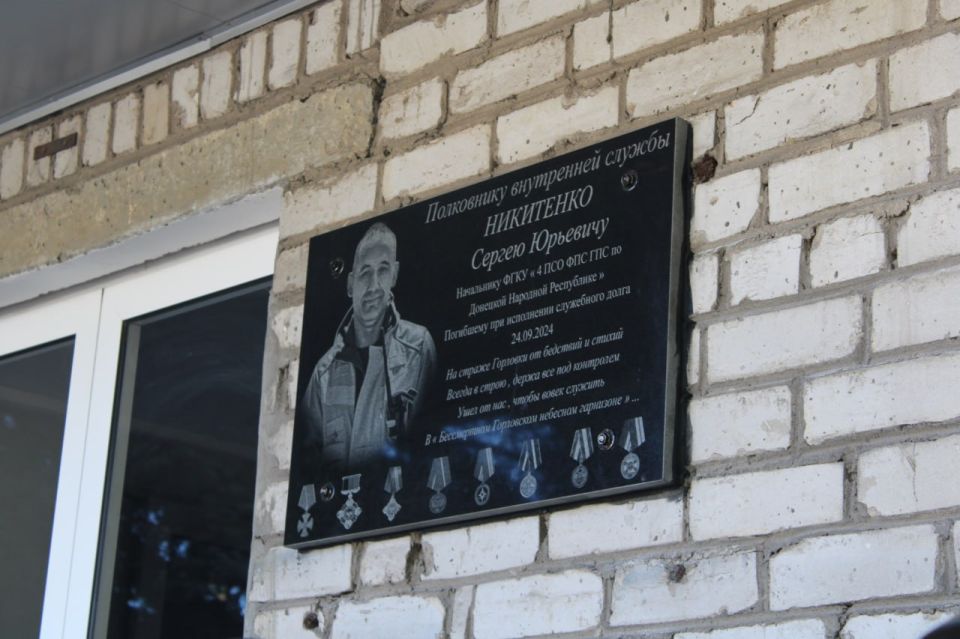Сегодня состоялась торжественная церемония открытия мемориальной доски в память о полковнике внутренней службы, почетном гражданине города Горловка Сергее Юрьевиче Никитенко, героически погибшем при исполнении служебного долга 24 сентября 2024 года.