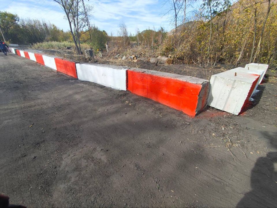 Окраска бетонных блоков по Углегорскому шоссе (мост).