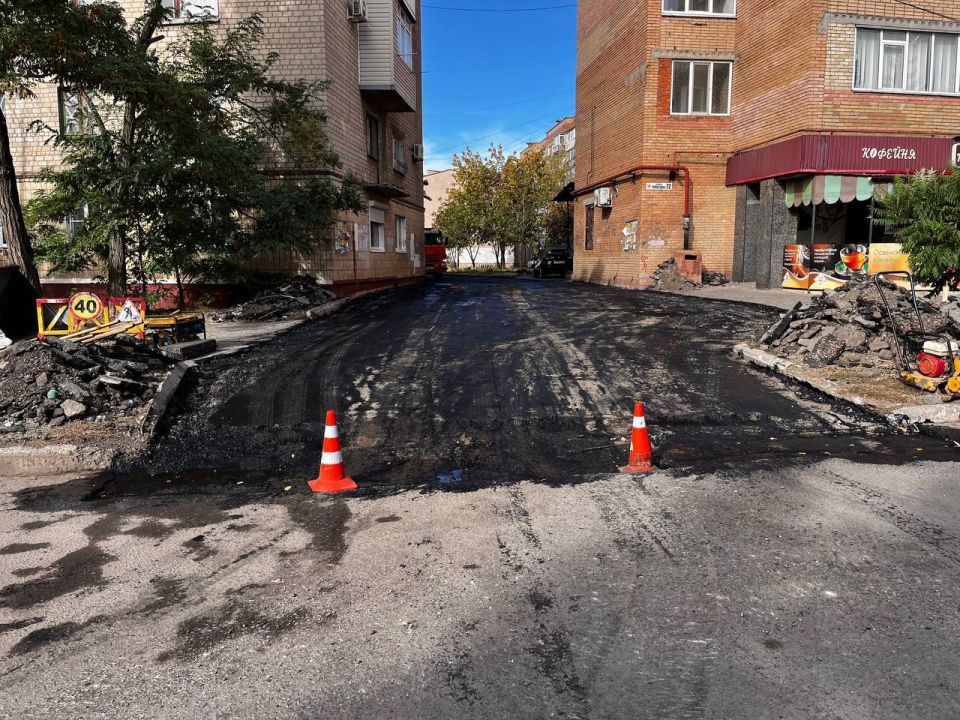 Укладка асфальта по ул. Академика Павлова, внутриквартальных заездах по ул. Остапенко.