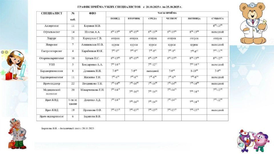 Иван Приходько: График работы специалистов ГБУ ДНР «ЦПМСП № 1 г. Горловки», ГБУ ДНР «ЦПМСП № 2 г. Горловки», ГБУ ДНР «ГСП № 4 г.Горловки», ГБУ ДНР «ЦОМД г. Горловки»