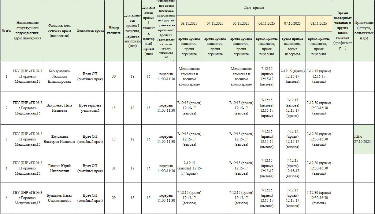 Иван Приходько: График работы специалистов ГБУ ДНР «Городская больница № 1 г. Горловки» и ГБУ ДНР «Городская больница № 3 г. Горловки»