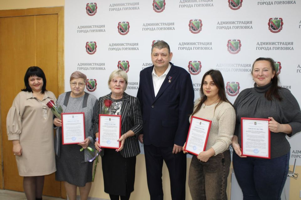 Сегодня вручил 4 свидетельства о регистрации Устава территориального общественного самоуправления (ТОС) в муниципальном образовании городского округа Горловка Донецкой Народной Республики. Свидетельства были вручены председателям ТОС «Жар-птица», «Михайловка», «Луч мира» и «Куба».