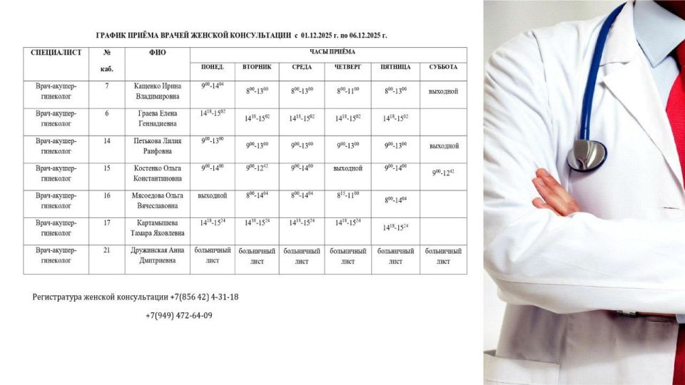 Иван Приходько: График работы специалистов ГБУ ДНР «ГДСП г.Горловки», ГБУ ДНР «Городской наркологический диспансер г. Горловки», ГБУ ДНР «ГПБ г. Горловки», ГБУ ДНР «ГПТД г.Горловки», ГБУ ДНР «ГДВД г.Горловки», ГБУ ДНР «ГСП...