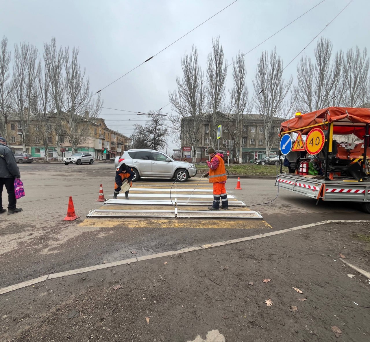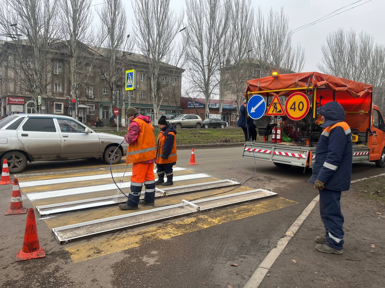 - нанесение дорожной разметки (пешеходные переходы) на городских дорогах;