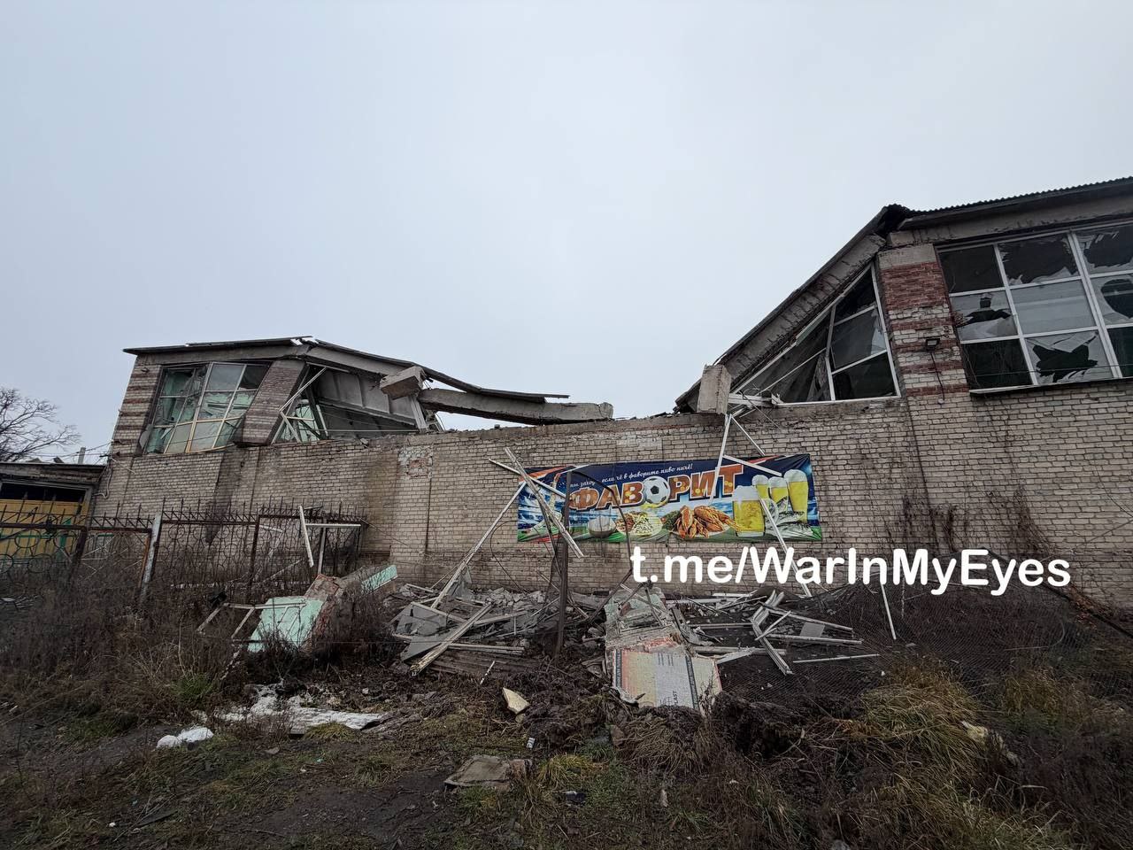 Последствия прилета ракеты РСЗО HIMARS в здание спортивного зала Горловского машиностроительного колледжа