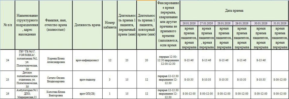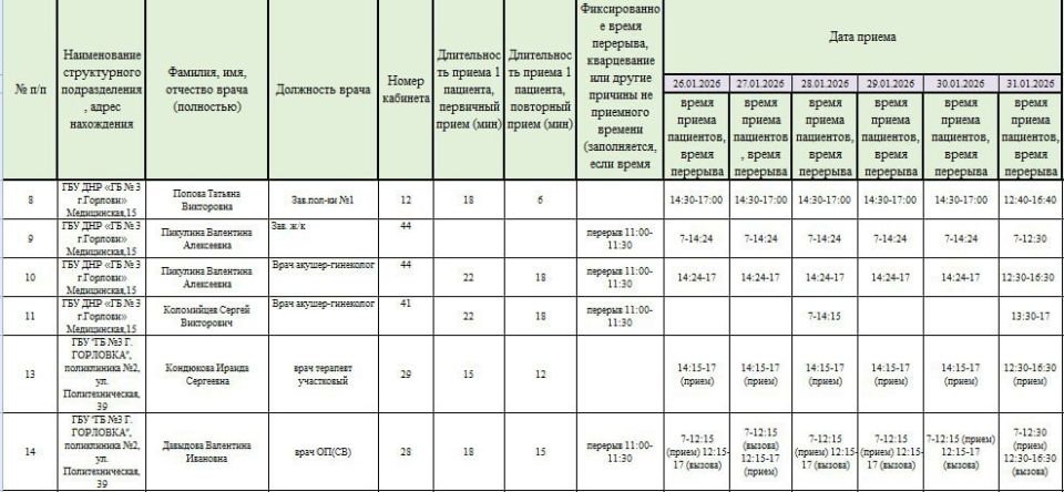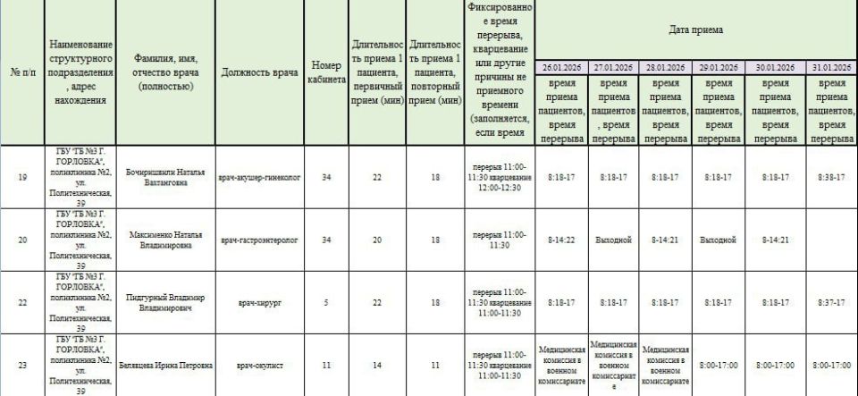 Иван Приходько: График работы специалистов ГБУ ДНР «Городская больница № 3 г. Горловки»